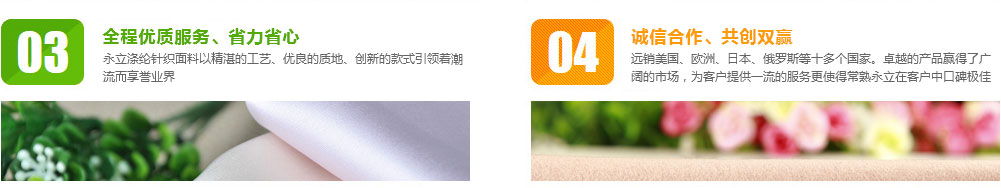 公司成立于1997年,坐落于風(fēng)景秀麗的虞山腳下,位于中國經(jīng)濟(jì)最活躍的版圖--長江三角洲經(jīng)濟(jì)技術(shù)開發(fā)區(qū)的黃金地段上,常熟市永立針紡織有限公司,伴隨著中國針紡織品行業(yè)蓬勃發(fā)展,走過了10多年的創(chuàng)業(yè)歷程,如今已發(fā)展成為一家集工、貿(mào)于一身,在行業(yè)內(nèi)聞名遐邇的專業(yè)生產(chǎn)滌綸針織面料的特色企業(yè)。本公司擁有來自臺(tái)灣的先進(jìn)制造設(shè)備,以雙面小提花機(jī)為主的34寸(16--45針)雙面緯編機(jī)50臺(tái)、34寸(20--50針)單面開幅機(jī)9臺(tái)、36寸 22針德國邁耶OVJE雙面電腦大提花機(jī)6臺(tái)及其他先進(jìn)設(shè)備。憑借著一流的設(shè)備,以及“人無我有,人有我好,人好我轉(zhuǎn)”的經(jīng)營理念,常熟永立一直致力于滌綸面料的創(chuàng)新...